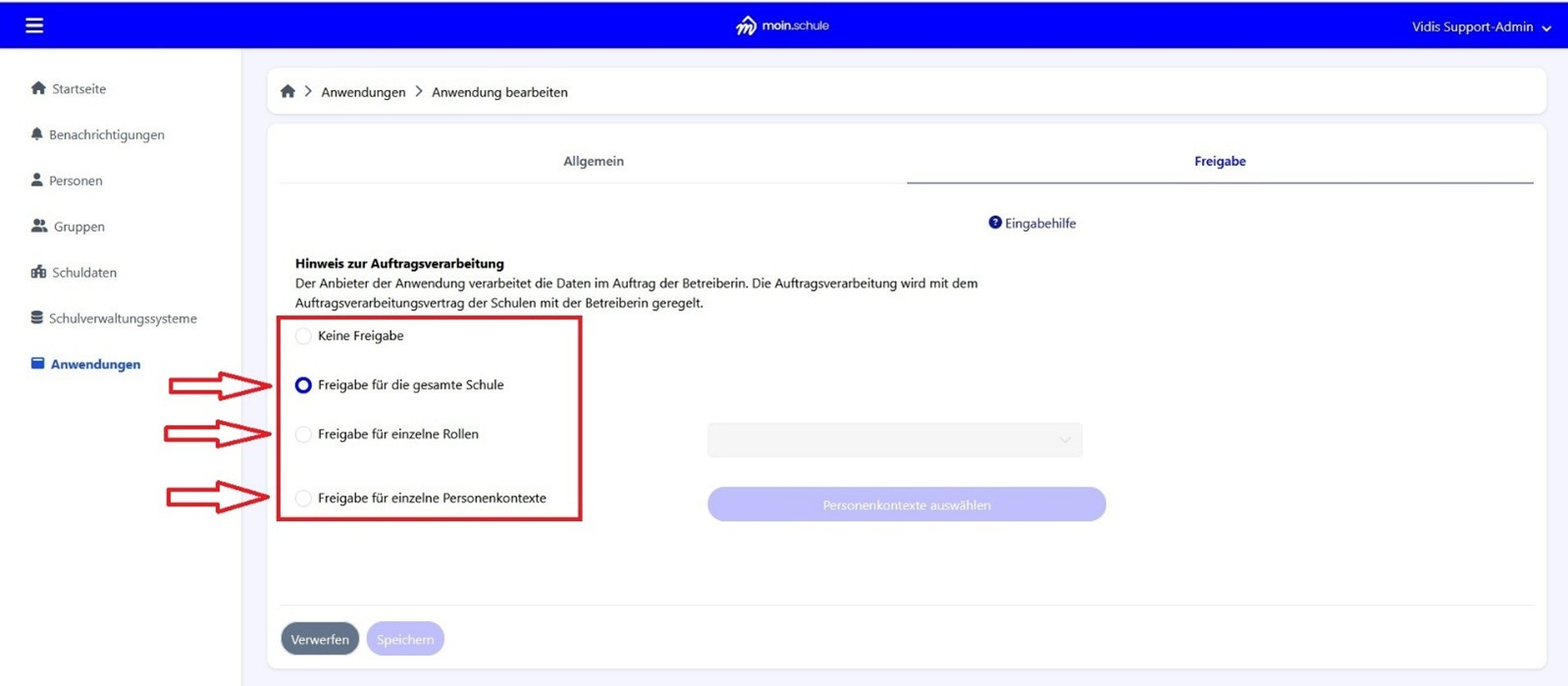 - Für die Nutzung von VIDIS muss die Schule den Nutzerkreis freigeben.