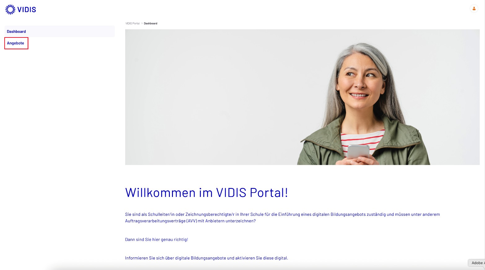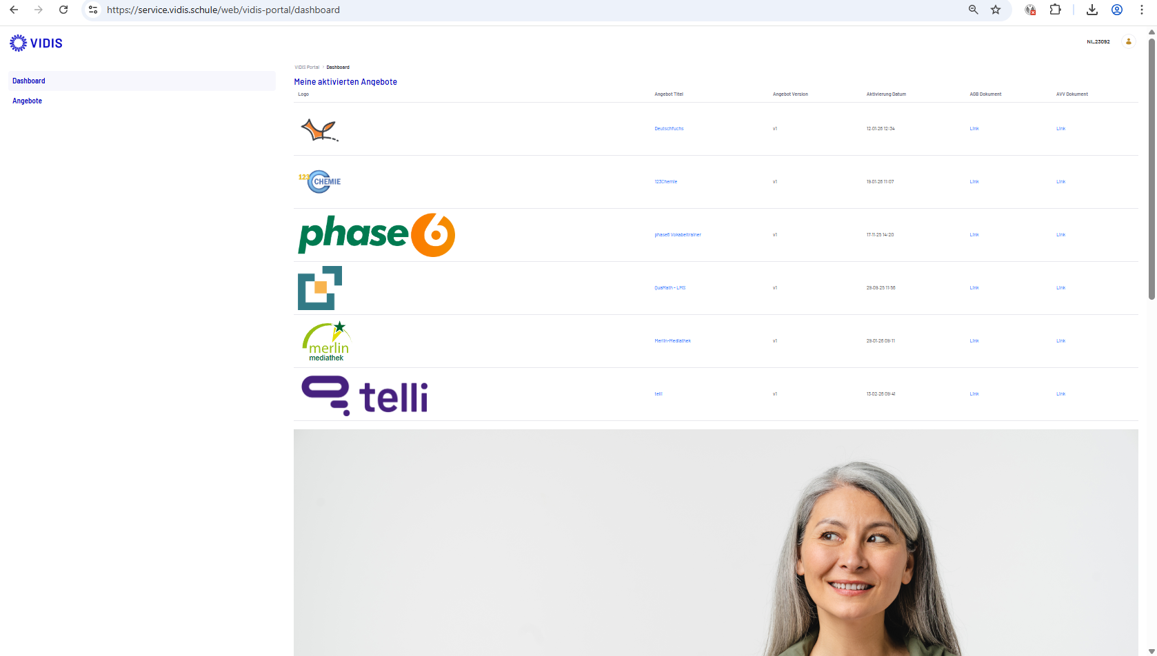 - Es erscheint eine Übersicht mit verschiedenen Anwendungen, die über VIDIS freigeschaltet werden können.