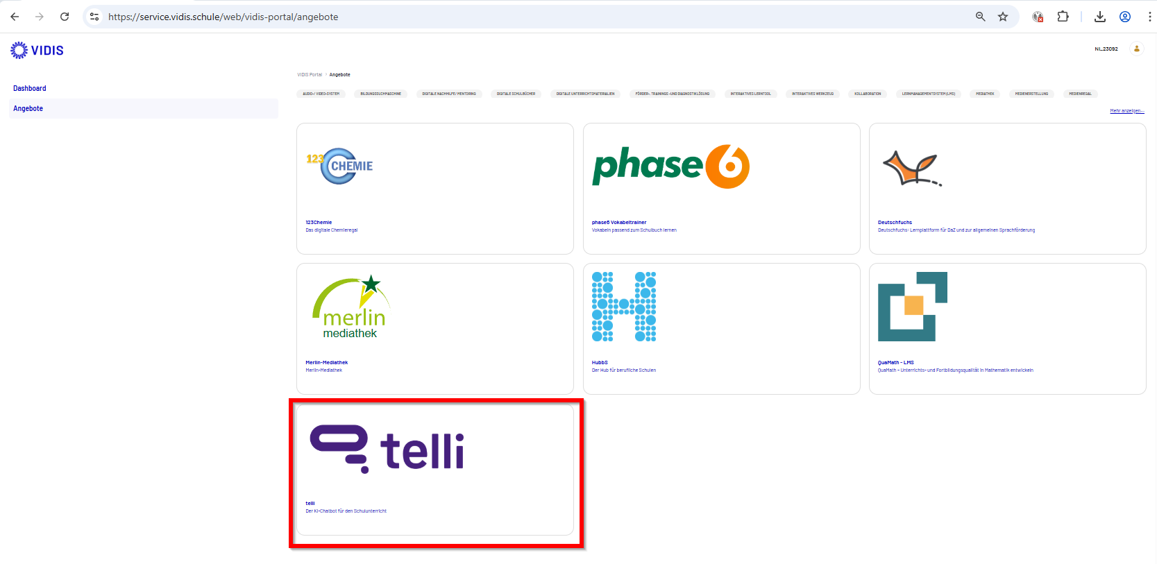 3. Schritt: telli in der Niedersächsischen Bildungscloud (NBC)