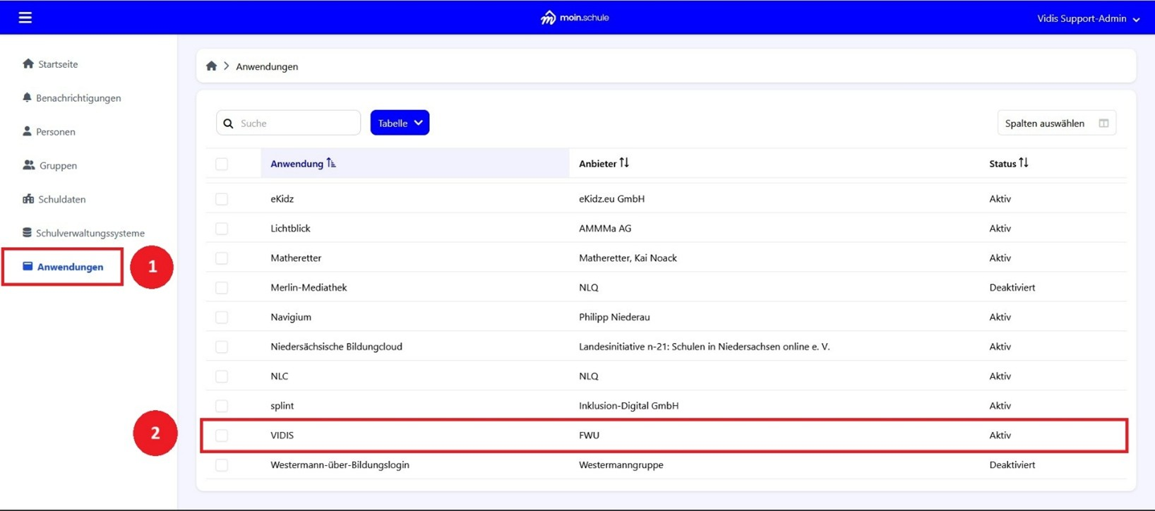 2. Schritt: Freigabe von Anwendungen in VIDIS (nur Schulleitungen)
