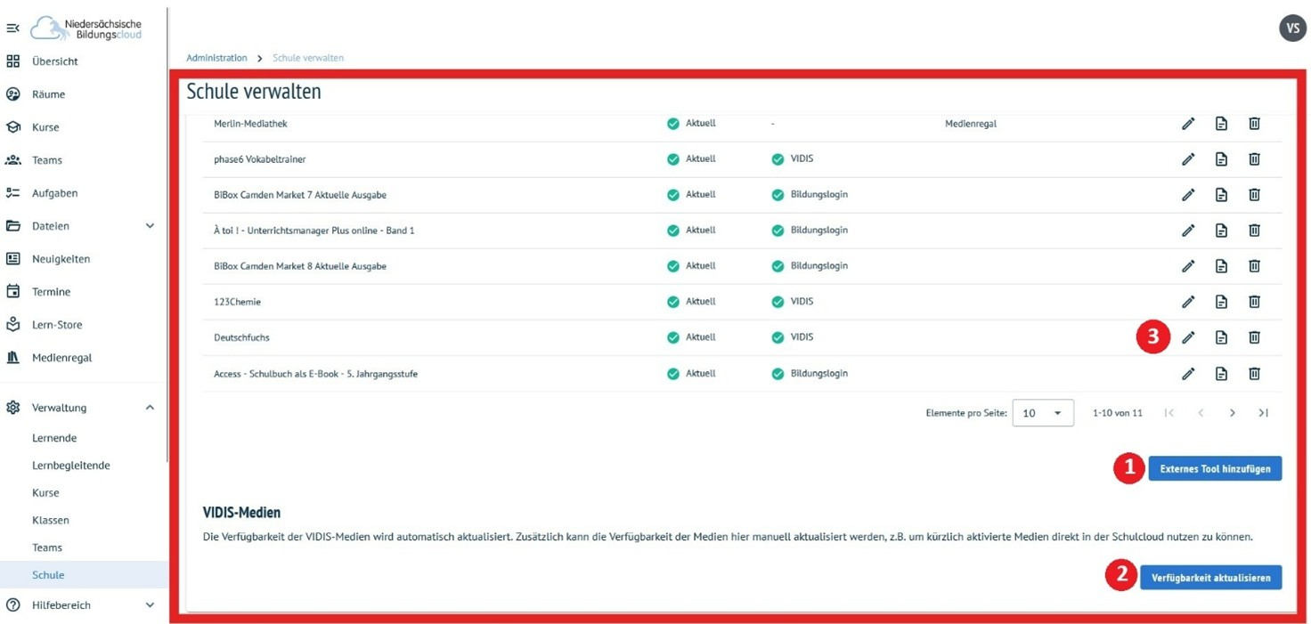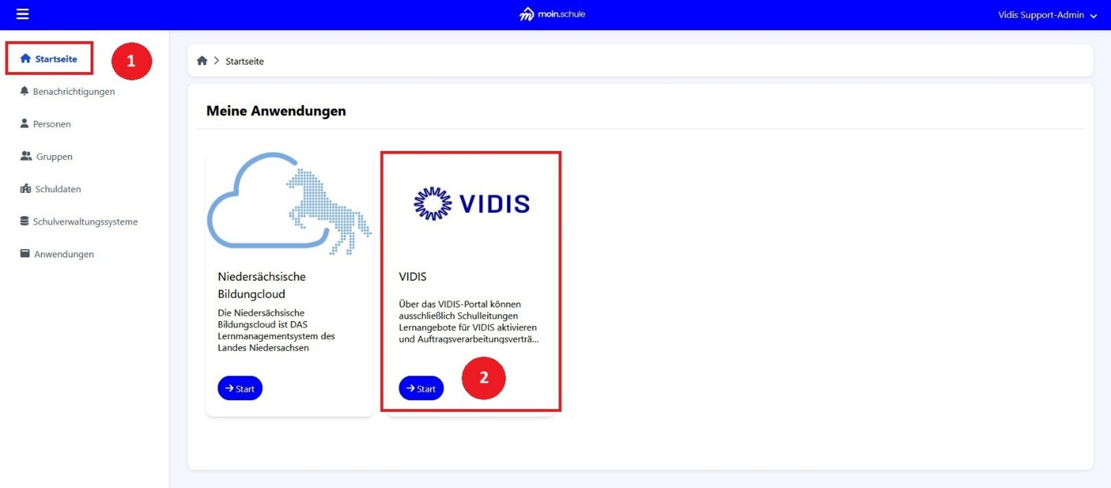 1. Schritt: Freigabe von VIDIS in moin.schule