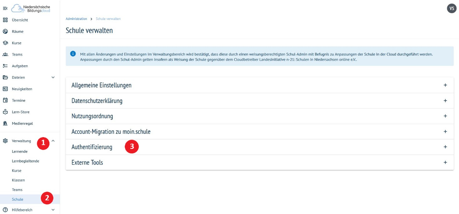 - Für die Nutzung von VIDIS muss die Schule den Nutzerkreis freigeben.