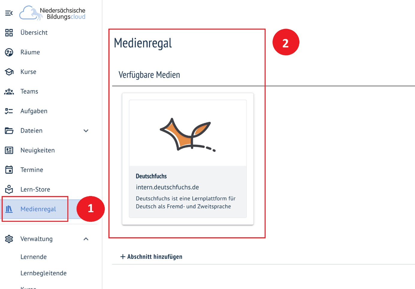 - Im Menü auf den Eintrag „Medienregal“ (1) navigieren.