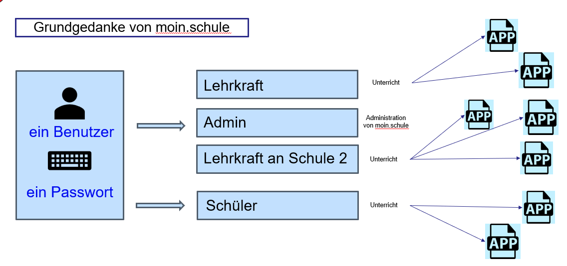 - Wechselt ein Schüler die Schule, bleiben Benutzername und Passwort erhalten. Die Administration läuft im Hintergrund ab.